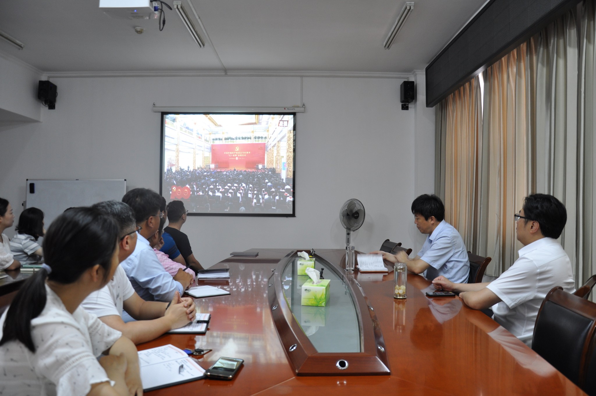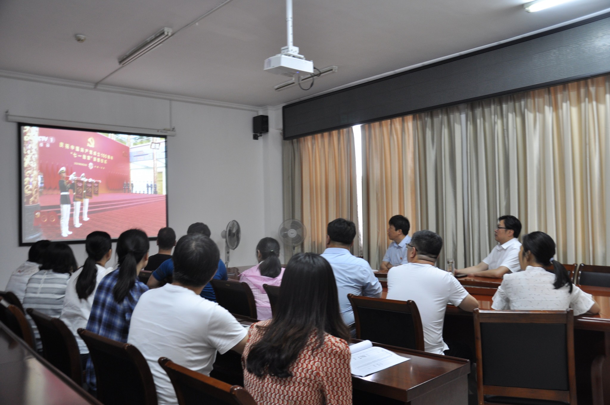 在收看過程中,整個(gè)會(huì)場秩序井然,與會(huì)人員聚精會(huì)神。