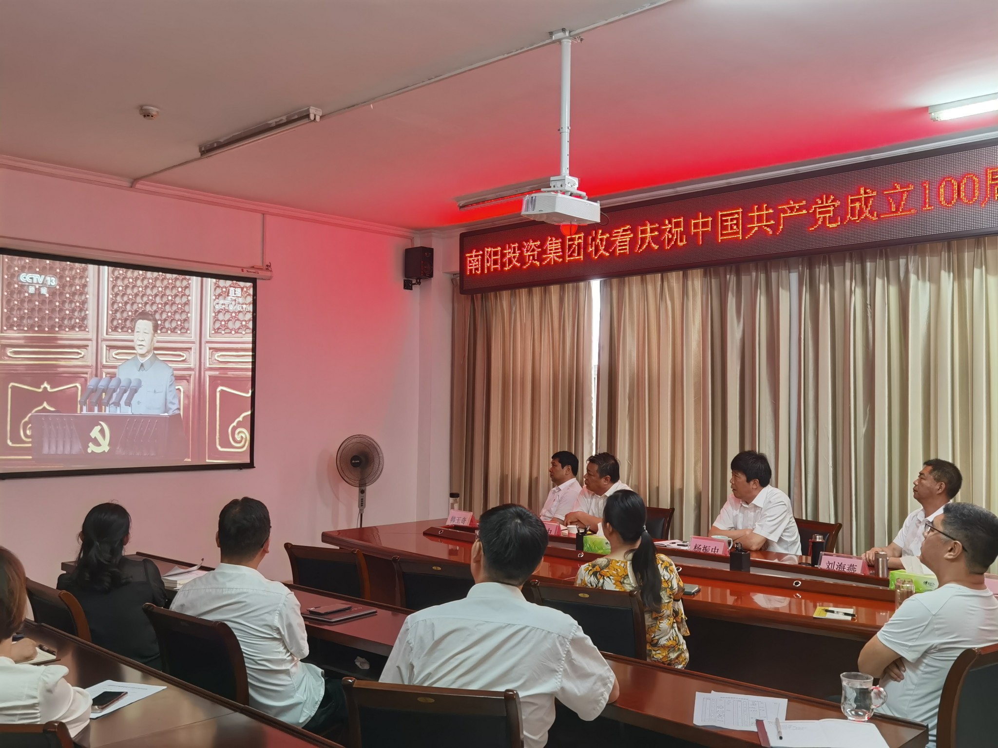2021年7月1日上午8時(shí),南陽投資集團(tuán)全體黨員收看慶祝中國共產(chǎn)黨成立100周年大會(huì),認(rèn)真學(xué)習(xí)習(xí)近平總書記在慶祝大會(huì)上的重要講話精神。