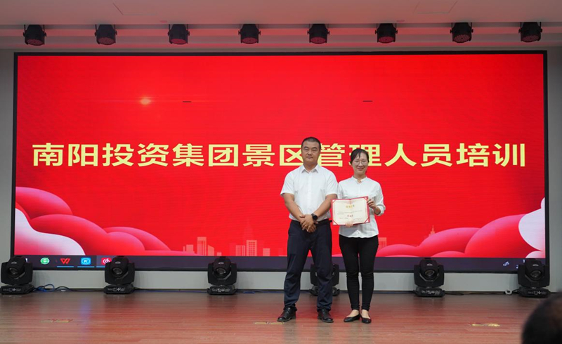 為進(jìn)一步強(qiáng)化學(xué)習(xí)效果,檢驗(yàn)培訓(xùn)成效,9月10日上午,南陽(yáng)投資集團(tuán)召開(kāi)景區(qū)管理人員培訓(xùn)成果匯報(bào)會(huì)暨頒獎(jiǎng)儀式。南陽(yáng)投資集團(tuán)人力資源總監(jiān)趙書(shū)沛出席儀式并講話,原上海歡樂(lè)谷總經(jīng)理、中國(guó)主題公園研究院副院長(zhǎng)王小瑞,原天津歡樂(lè)谷副總經(jīng)理劉凡惠等出席并作點(diǎn)評(píng)。