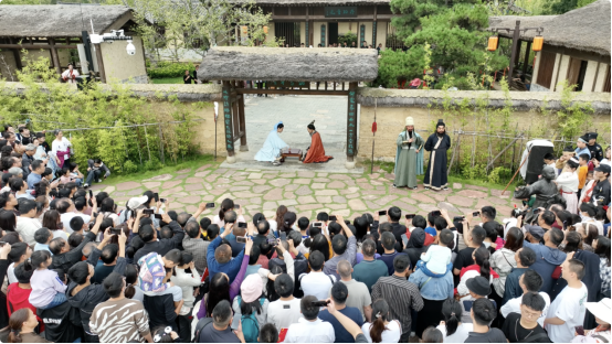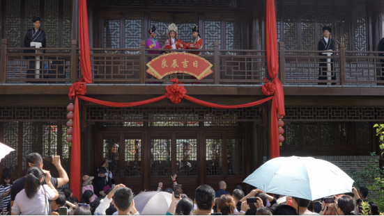 諸葛亮、劉備、張飛、關(guān)羽等幾十位三國人物“穿越而來”;電視里的捶丸、拋繡球招親、科考照進現(xiàn)實?!秳淦迳纭?、《貂蟬燈謎鋪》、《草廬對》、《諸葛斗志堂》、《良辰吉日》、《狀元及第》等真人NPC互動游戲,花樣繁多、玩法新奇。在園區(qū)體驗一把古代高爾夫、考上一回狀元、接上個繡球,三國人物與游客一起互動對話,氛圍感拉滿,一鍵穿越回古代。