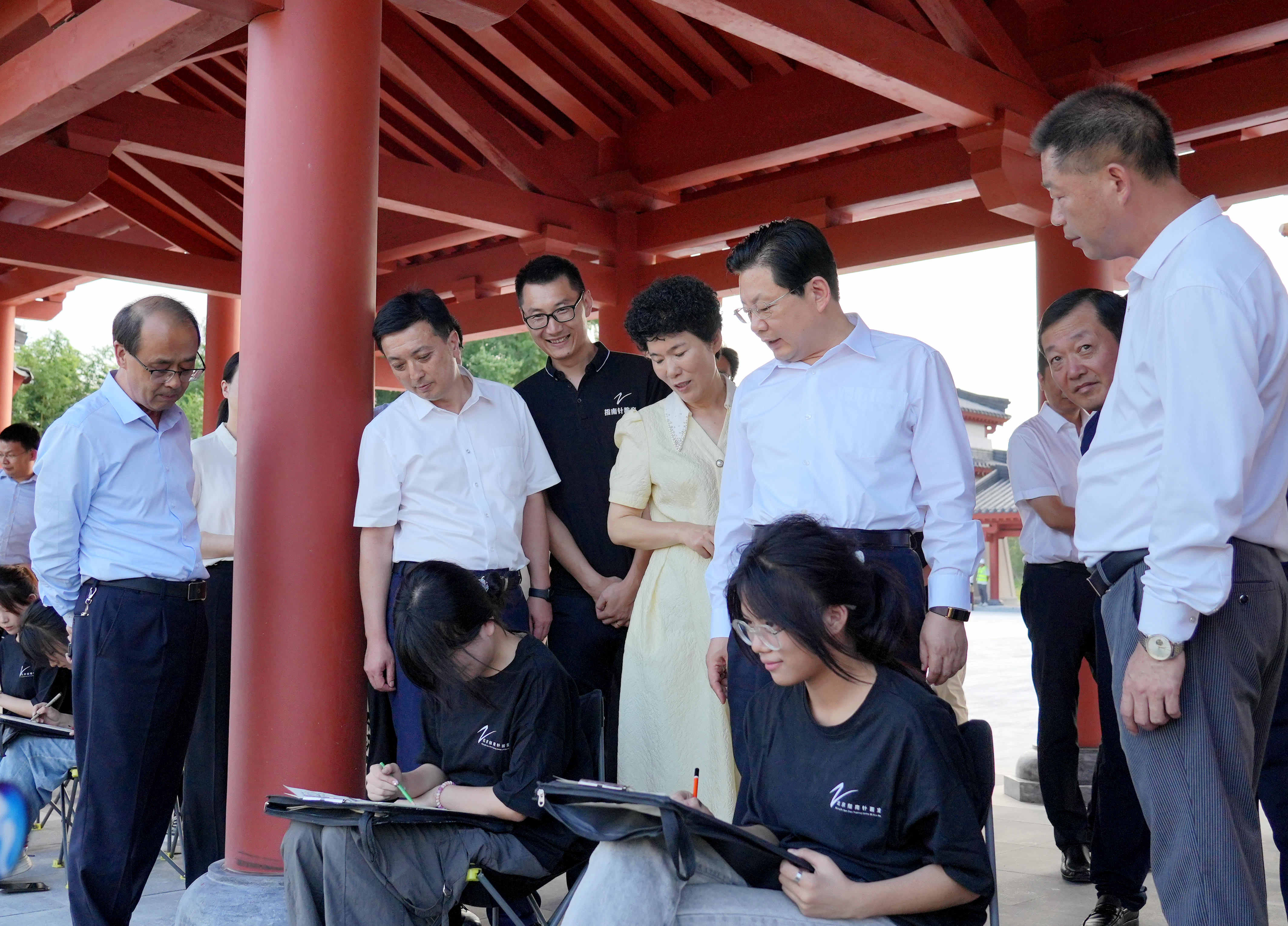 調研現場,醫(yī)圣文化園一區(qū)主體高臺建筑威嚴莊重,紅墻黃瓦頗具古意,景觀綠化初具規(guī)模,起舞的漢服愛好者、沿河寫生的學生、廊下習琴的少年引得朱是西一行饒有興致地駐足觀看并與大家親切交談。朱是西邊走邊看邊研究,與相關工作人員就全面加快項目建設進度、運營策劃設計、文旅底蘊挖掘等方面進行了交流,并提出了指導意見。調研結束后,朱是西召開現場會議,詳細聽取了項目相關工作推進情況的匯報。集團黨委書記、董事長劉九利在匯報中表示,南陽投資集團堅決按照朱書記指示,圍繞提高游客人數和旅游收入“兩個提高”的要求開展運營籌備工作,著力打造活化演繹來提升游園體驗,組織系統(tǒng)活動來豐富游園內容,打造夜間游玩項目來提升旅游收入,做強仲景書院運營來帶動游園人氣,堅決把市委市政府交給集團的資源運營好、經營好,為全市人民和外地游客打造中醫(yī)朝圣和中醫(yī)藥文化體驗的圣地。