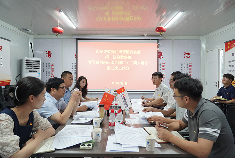 7月1日,市紀(jì)委監(jiān)委駐市管國有企業(yè)第一紀(jì)檢監(jiān)察組組長馬馳一行前往白河南污水處理廠(二期)項(xiàng)目調(diào)研督導(dǎo)基層黨建及清廉工程建設(shè)工作。集團(tuán)黨委副書記、監(jiān)事會(huì)主席韓玉奇陪同調(diào)研。