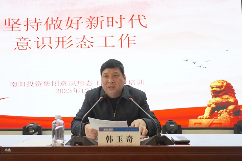 為深入學習貫徹習近平新時代中國特色社會主義思想和黨的二十大精神,全面貫徹落實習近平文化思想和習近平總書記關(guān)于意識形態(tài)工作的重要論述精神,牢牢把握鑄牢中華民族共同體意識這條主線,12月27日,南陽投資集團舉辦意識形態(tài)專題培訓,集團黨委副書記、監(jiān)事會主席韓玉奇作專題授課。