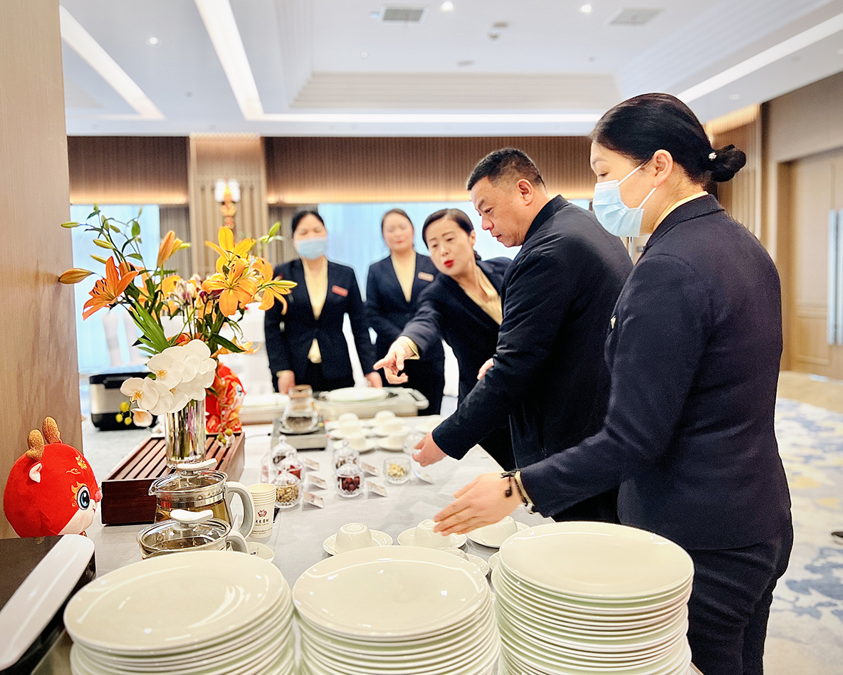 在南陽(yáng)賓館,紀(jì)監(jiān)組詳細(xì)詢問(wèn)了會(huì)議期間食宿保障、會(huì)務(wù)服務(wù)等情況,檢查了餐廳操作區(qū)域衛(wèi)生情況以及食品留樣情況,親身感受了賓館養(yǎng)生茶臺(tái)的溫馨服務(wù),馬馳對(duì)南陽(yáng)賓館提供的個(gè)性化服務(wù)表示肯定,并明確了茶歇區(qū)域的飲品提供標(biāo)準(zhǔn)。韓玉奇指出,此次南陽(yáng)賓館、月季賓館組織近300人,舉全賓館之力參與“兩會(huì)”服務(wù)保障工作,領(lǐng)導(dǎo)團(tuán)隊(duì)全天駐守,堅(jiān)持在一線抓思想動(dòng)員、在一線抓安全保障、在一線抓服務(wù)落實(shí),為各位參會(huì)代表提供優(yōu)質(zhì)、專業(yè)、安全的接待服務(wù),并收到了多封表?yè)P(yáng)及感謝信,月季賓館、南陽(yáng)賓館將嚴(yán)格按照“兩會(huì)”的有關(guān)要求和安排部署,充分發(fā)揮南陽(yáng)政務(wù)服務(wù)酒店作用,專業(yè)專注、用心用情,綠色辦會(huì)、厲行節(jié)約,扎實(shí)做好“兩會(huì)”服務(wù)保障工作。